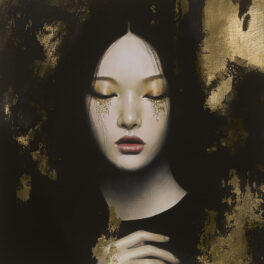 He’s currently using a lot of gold leaf and is trying to find new ways to apply it. He builds up textures with layers of gesso and gilding glue before applying the gold…and then plays on the surface, adding and removing paint to enhance the overall effect even further. Everything is then sealed with layers of varnish to protect and unify the overall finished appearance.