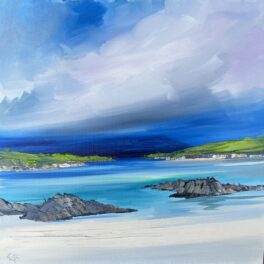 These are imagined places – her Lands of Escape – but based on direct experience of the Atlantic seaboard of North West Scotland and Orkney; real landscapes of hill-top, ocean and immense, free sky. Places she continues to visit with her young family.