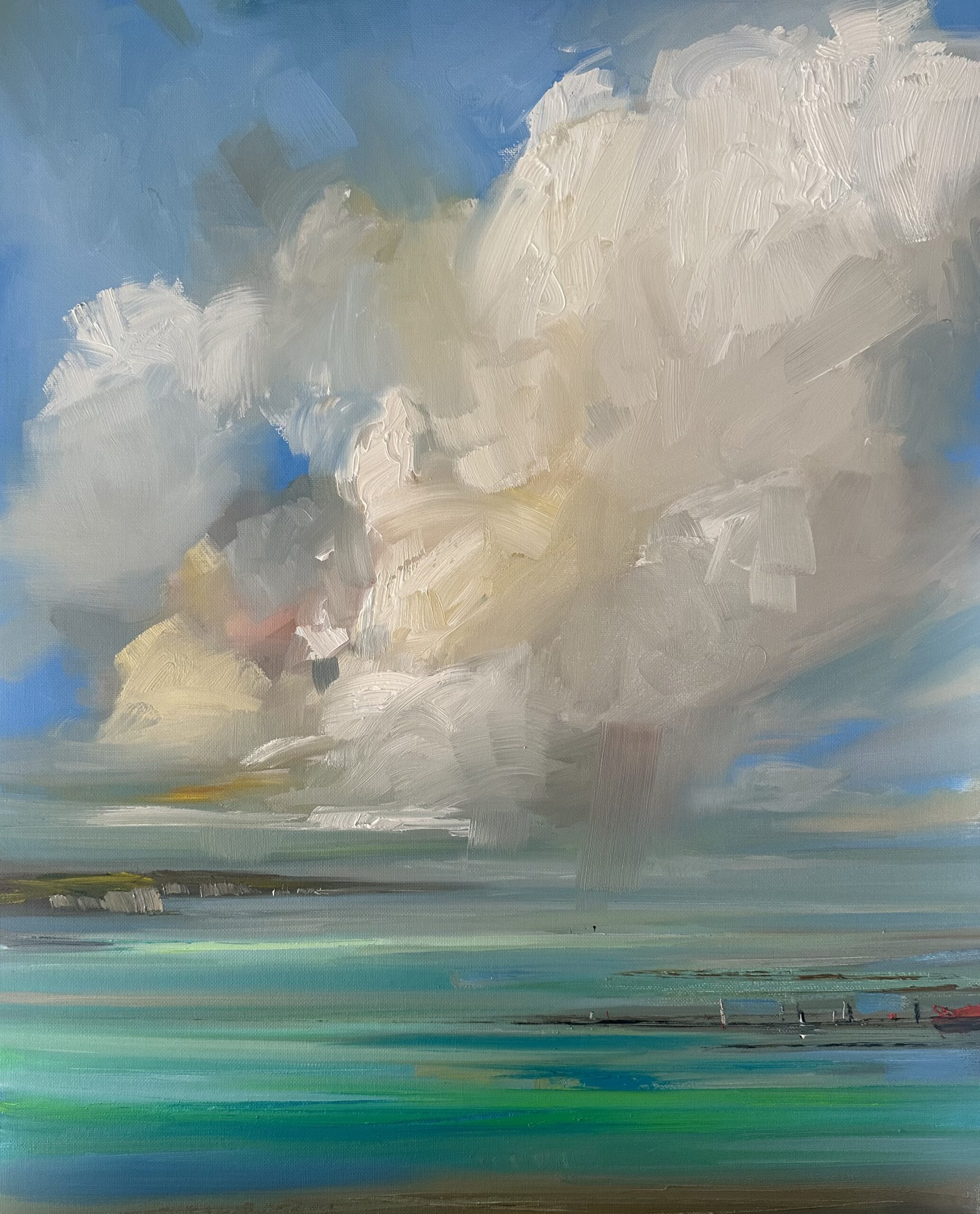 Heightened colours of sunrise, sunset, amidst calm and storm; simplified shape and blending lines are the basis of her distinctive abstract style.