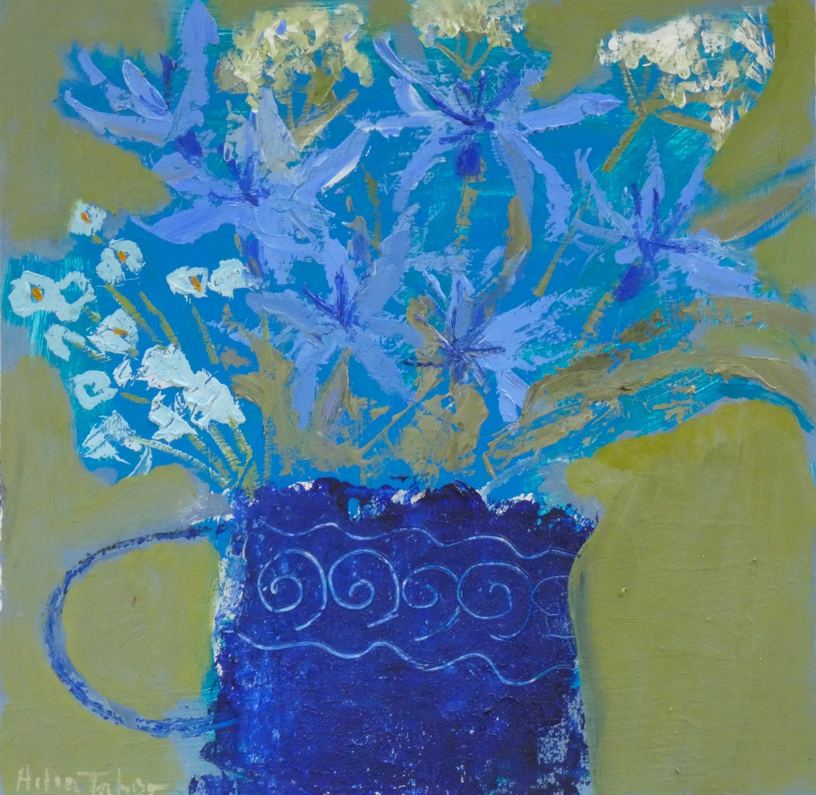 In her landscapes and seascapes, Helen is inspired predominantly by colour and atmosphere. The seascapes can be moody with threatening skies but there is always a stillness about them suggesting the moment before or after a storm or that feeling of melancholy coming form the wind blowing through marram grass. Other works from this artist