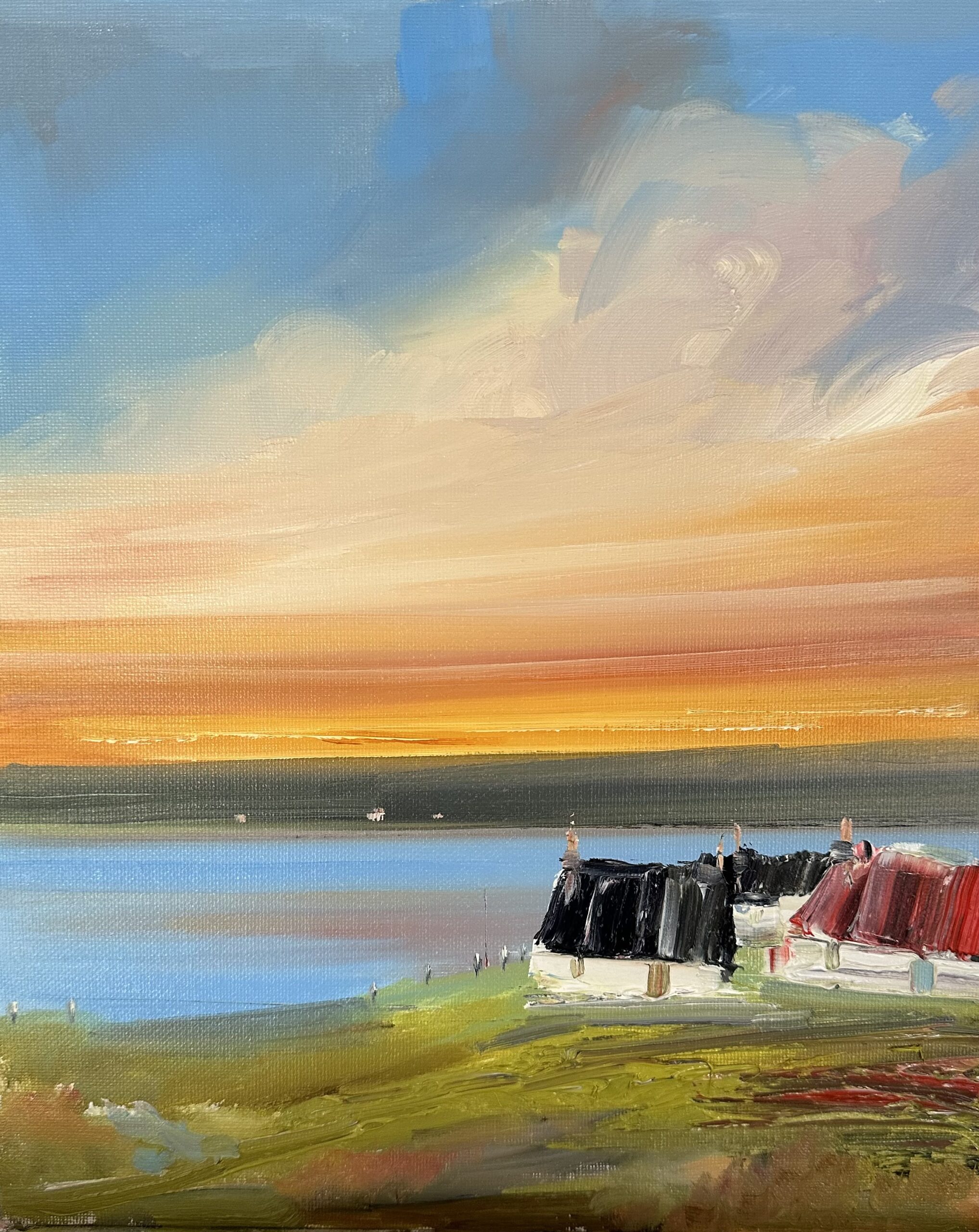 In 2008 her first major solo show Lands of Home and Venture at The Green Gallery was a sell-out: ...with much critical acclaim for her:“bold brushed landscapes, deftly mixing realism, impressionism, and a dash of the Colourists. Always inspired by Scotland’s landscapes”. [The Herald 8.03.08]