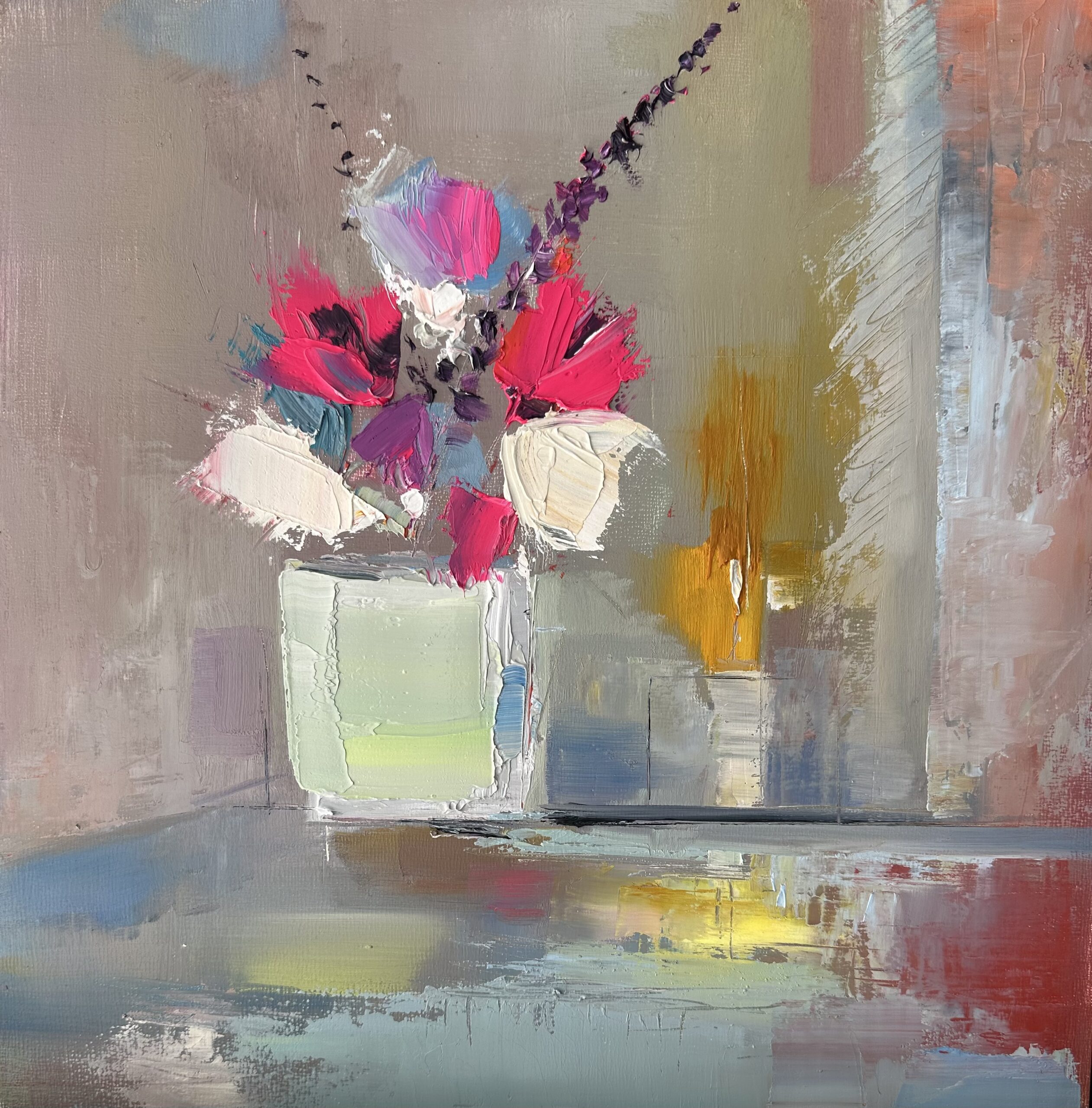Rosanne exhibits widely across the UK with paintings in private collections around the world. A busy full-time artist, she now lives in Milngavie. Her garden studio lies close to Allander Water, the gateway to the West Highland Way and the Scottish Highlands.