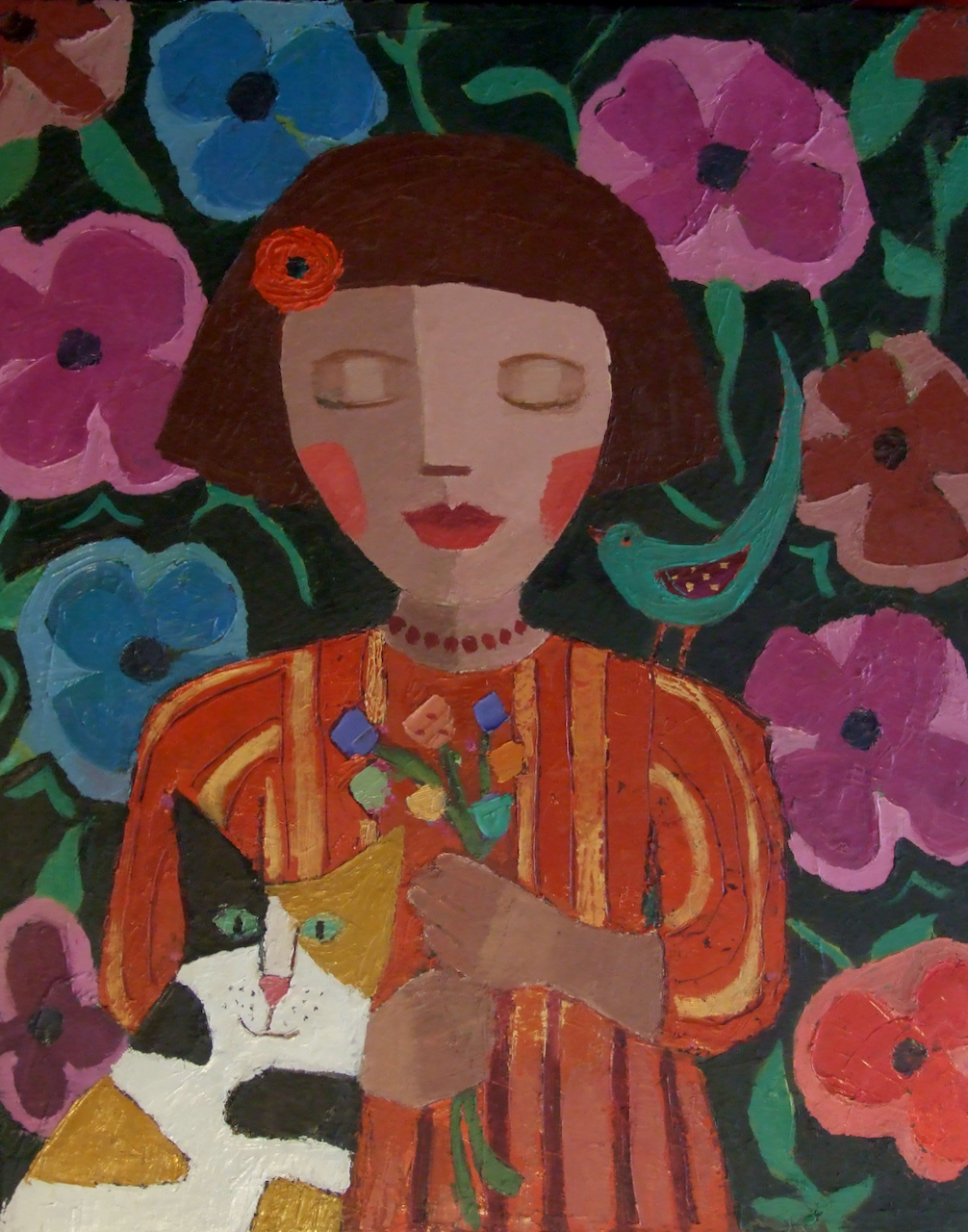 I’m not conscious of creating or working with themes. People and pattern are my main concerns and how they interact. The creative process is basically a primal urge to reproduce so it seems natural to paint people.