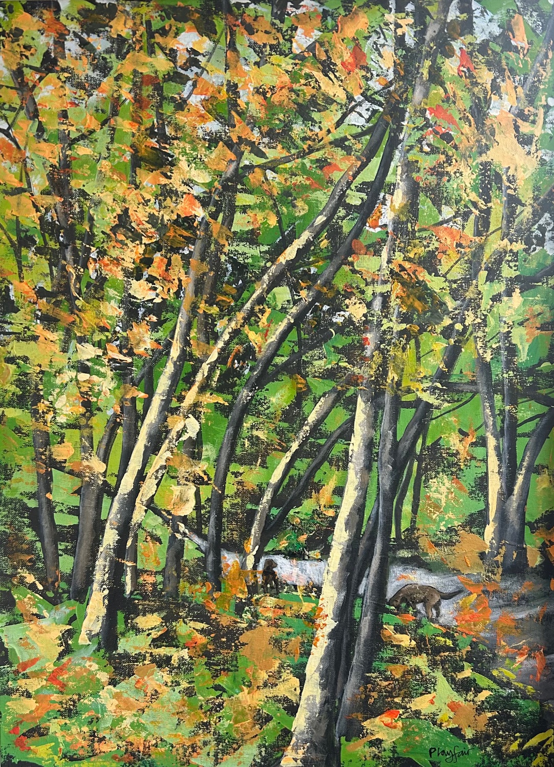 Rosie Playfair graduated from Duncan of Jordanstone College of Art in Graphic Design, selling many of her college pieces to lecturers, other students and the public. Then she never picked up a paintbrush or pencil for the next 25 years, preferring PR, marketing and the occasional bit of interior design to satisfy her creativity.