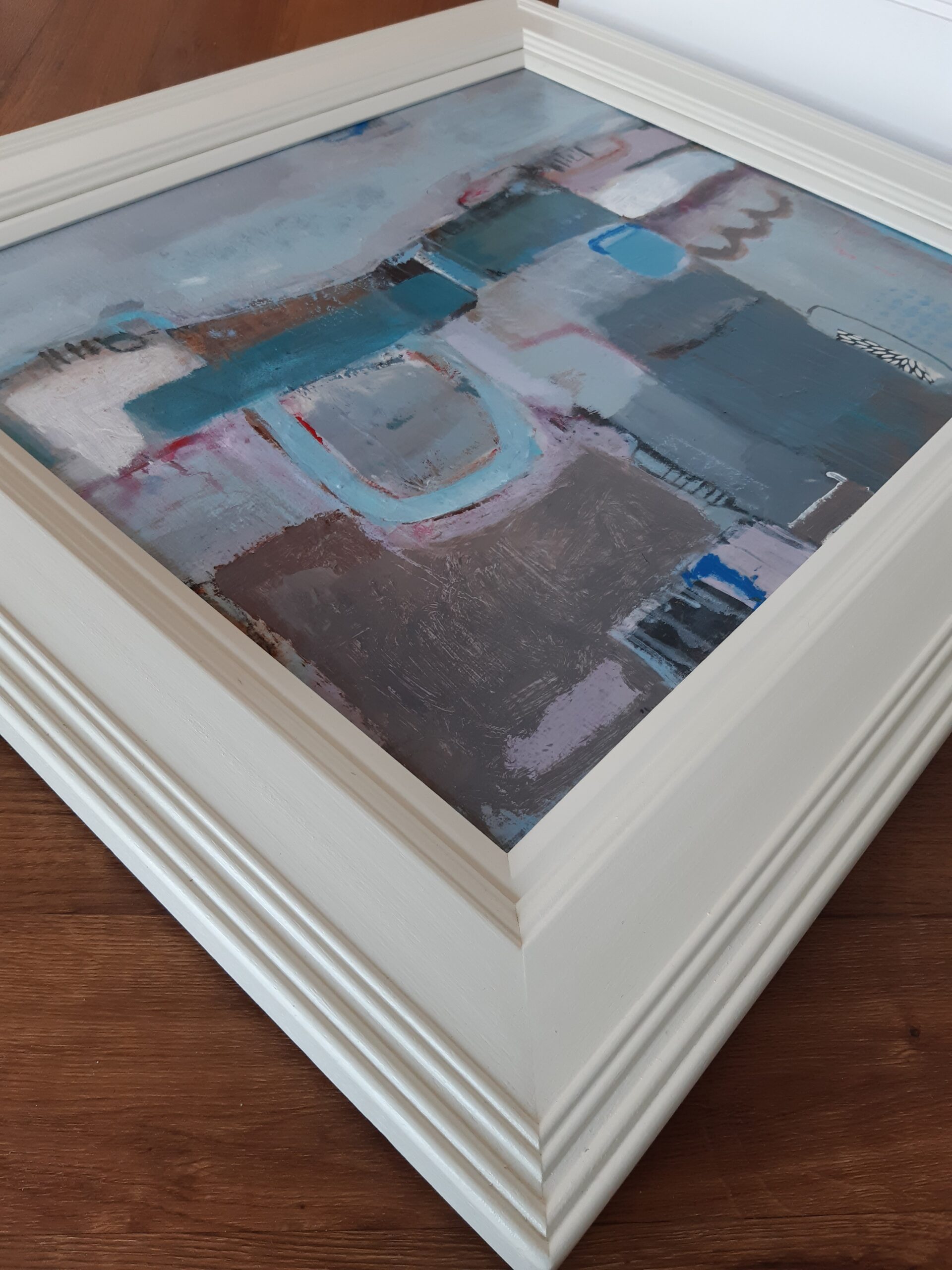 The physicality of her work means she is adding and subtracting, adding and taking away until the final work emerges, creating depth with saturated splashes of colour, together with large planes of muted tones. Her inspiration is taken from experiences, emotions, memories with a big dollop of experimentation. Other works from this artist